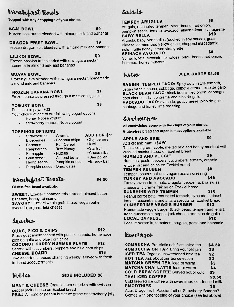Whether it's the delicious coconut smoothie bowl or the coveted dragonfruit bowl, each dish echoes a commitment to quality and taste. Dive into a nourishing experience that truly celebrates the power of real, raw foods!